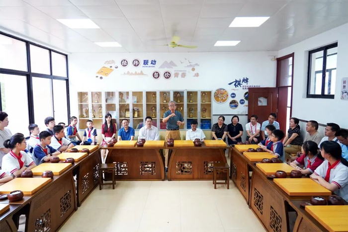 大师赛期间还举行了围棋大师进校园活动。10日上午,中国围棋协会主席常昊、名誉主席华以刚、副秘书长刘菁,上海棋院院长刘世振等围棋大师及棋手俞俐均一同前往育秀中学开展交流活动,通过“车轮战”形式与学生和社区围棋爱好者们进行“指导棋”切磋,为现场观众带来一堂别开生面的围棋公开课。
